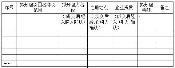 附件:擬分包計劃表(如分包時(shí)必須提供)