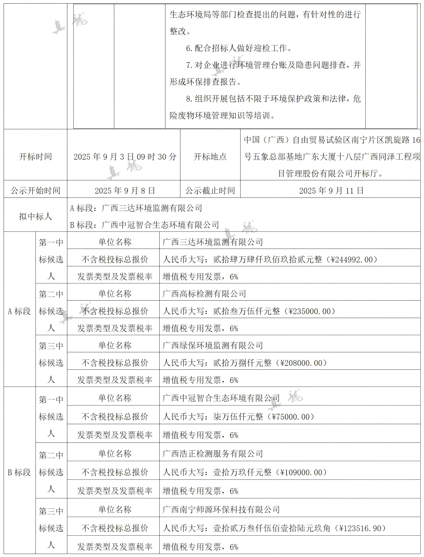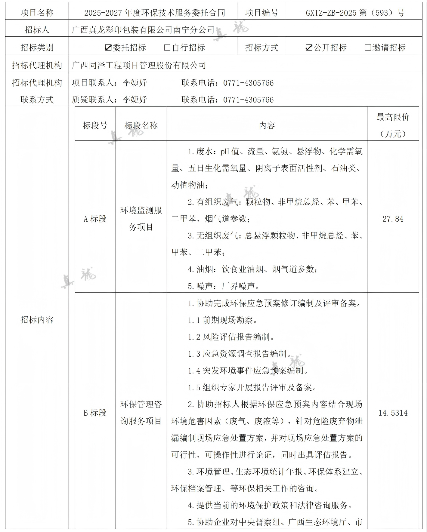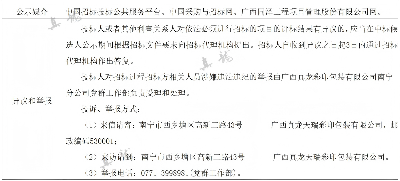 廣西真龍彩印包裝有限公司南寧分公司2025-2027年度環(huán)保技術(shù)服務(wù)委托合同(項目編號:GXTZ-ZB-2025第(593)號)中標候選人公示