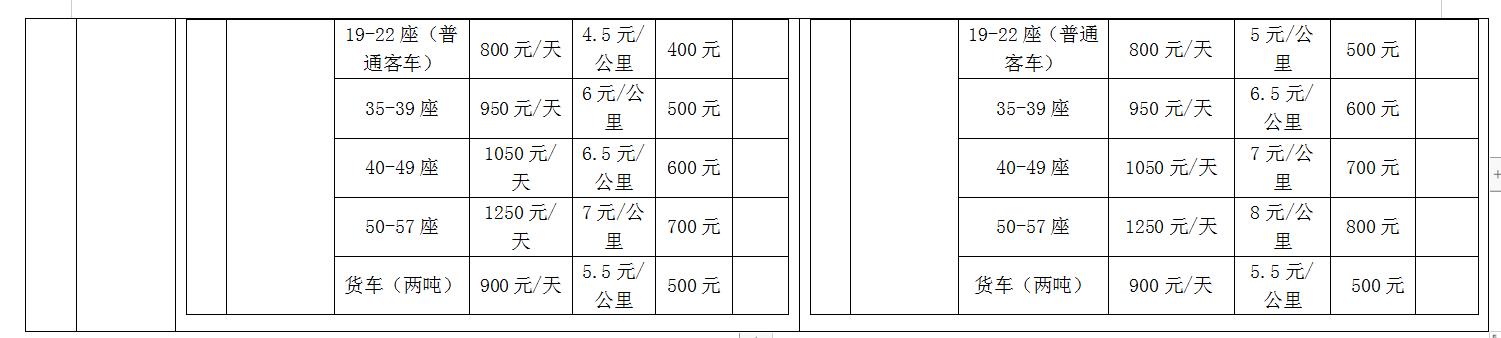 更正內容:招標文件中,所有租車(chē)價(jià)目表以更正后內容為準: