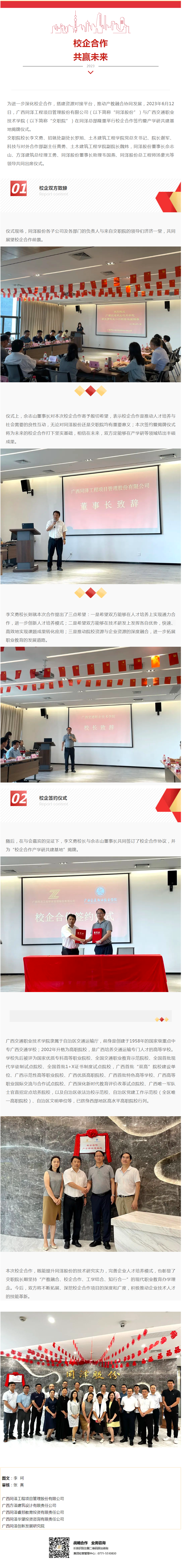廣西同澤工程項目管理股份有限公司與廣西交通職業(yè)技術(shù)學(xué)院隆重舉行校企合作簽約暨產(chǎn)學(xué)研共建基地揭牌儀式